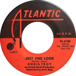 In 1963, Doris Troy scored her only hit on the U.S. Billboard Hot 100 chart with "Just One Look". The song spent 14 weeks on the Billboard Hot 100, peaking at No. 10,[6] while reaching No. 3 on Billboard's Hot R&B Singles chart,[7] No. 8 on New Zealand's "Lever Hit Parade",[8] and No. 1 on Canada's CHUM Hit Parade for 3 weeks.[9] It also charted at No. 9 on the Cash Box Top 100, in a tandem ranking with the version by Andy and the Marglows, with Troy's version marked as a bestseller.[10]