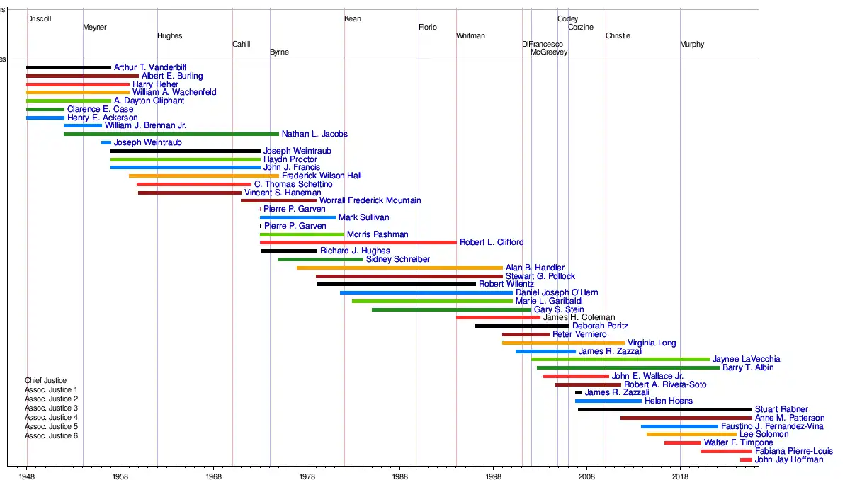 - ^ a b At the end of their initial seven-year term, the justice was renominated for tenure and was confirmed by the New Jersey Senate to serve until the mandatory retirement age of 70.