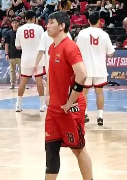 In the 2019 Philippine Cup, he had a new career-high of 24 points while also grabbing six rebounds against the Bolts.[29] Phoenix could have lost the game in overtime as he missed a game-winning jumper, but his teammate Calvin Abueva was there to rebound the miss and score.[29] The following game, he was punched in the fist by TNT player Michael Miranda.[30] Miranda was then fined P30,000 and suspended for one game.[30] Once again, he also participated in the Obstacle Challenge of that year's All-Star Weekend.[31] That conference, Phoenix made its first-ever semifinals.[32] In the semifinals, they lost to the Beermen in five games out of a best-of-seven series, with him having 18 points and 11 rebounds in the Game 5 loss.[33] In the Commissioner's Cup, he scored a game-winning layup against the Aces.[34]