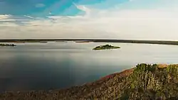 Käina Bay (Estonian: Käina laht) is almost isolated and very shallow approximately 9 km2 (3.5 sq mi) marine area between the Estonian islands Hiiumaa and Kassari, which is connected to the surrounding Väinameri and adjacent Vaemla Bay via three tiny channels - Orjaku channel, Orjaku sill and Vaemla (Laisna, Õunaku) channel. The maximum depth of Käina Bay is about 1 meter. Käina Bay is separated from the Väinameri Sea by Kassari Island, Õunaku Bay and Jausa Bay by a dyke road. There are many thickets of reeds and islets (23). In the southern part of the bay there is mineral curative mud.[1]