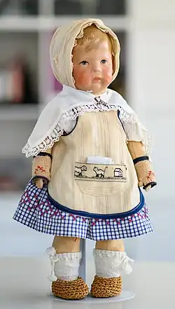 Käthe Kruse, born Katharina Simon (17 September 1883, in Dambrau – 19 July 1968, in Murnau am Staffelsee) was a notable pioneer of German doll-making and went on to establish manufacturing principles which persist to this day.[1] Her original dolls remain very collectible due to their realism and durability, and fetch high prices from collectors.