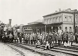 Its operating company, the Kleinbahn AG Höchst-Königstein gained a concession to build the Königstein Railway in 1901 as a Kleinbahn (light railway); this company later developed into the Frankfurt-Königsteiner Eisenbahn (FKE). Construction began at the Höchst am Main station (before its incorporation into Frankfurt) on the Taunus Railway. The line was opened on 24 February 1902.[2] The company first had bought three locomotives which were similar to the Prussian T 9.1. Followed by three more of the same type in 1903 (sold in 1910), 1913 and 1924 as well as a Prussian T 3 in 1906, there were no further machines up to 1947 when two Palatine P 5 from Deutsche Reichsbahn were bought. Apart from few other steam locomotives, which were partly short time lend, the FKE switched powers to diesel engines, buying several Esslingen railbuses in 1959 and renting Class V 100 and Class V 160 from Deutsche Bundesbahn operating as push-pull trains with "Silberling"-coaches.[3] Since 1987 the FKE runs railcars VT 2E by Linke-Hofmann-Busch. Since 2006 the fleet consists of LINT 41 railcars, too.[4]