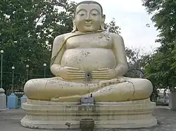 In Thai Buddhism, he is also known as Phra Sangkajai and often portrayed as extremely portly.