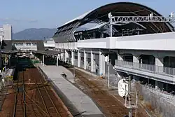 The new roof covering the station is affectionately referred to as the Kujira Dome (くじらドーム, lit. "Whale Dome"). It received the Landmark Prize at the seventh annual Japanese Railway Awards held by the Ministry of Land, Infrastructure, Transport and Tourism.