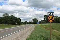 K-68 is a 61.517-mile-long (99.002 km) east–west state highway in the U.S. State of Kansas. K-68's western terminus is at U.S. Route 75 (US-75) and K-31 south of Lyndon and the eastern terminus is a continuation as Missouri Route 2 at the Missouri state line.[2][3][4]