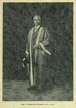 Sir Konkoth Ramunni Menon[1] (14 September 1872 – c. February 1949)[2] was an Indian educator who was the vice chancellor of the University of Madras from 1928 to 1934.[3]