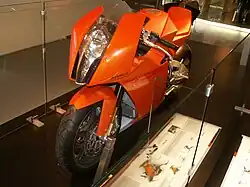 The KTM 1190 RC8 is a supersport bike made by KTM.[1] The now highly collectable first generation 2008 model had a 1,148 cc (70.1 cu in) V-twin engine and was the Austrian manufacturer's first-ever Superbike design. The RC8 model was supplemented with RC8 R models one year later in 2009 and the RC8 designation had its last year of production in 2010. Models from 2009 through to 2013 use a 1,195 cc (72.9 cu in) V-twin engine with a twin spark per cylinder head and 2mm oversize piston.[2] It is believed fewer than 1000 RC8 and RC8 R motorcycles were produced.