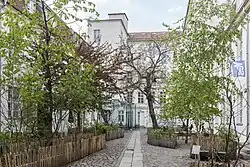 The institute's building, which it still occupies, is located at Auguststrasse 69, in the Mitte district of Berlin.[2] KW's original buildings included the margarine factory and an additional building at its rear that had produced quartz lamps and spray paint. These were leased to the institute in 1991, for 25 years, by the Wohnungsbaugesellschaft Mitte, a local housing association.[7][8]