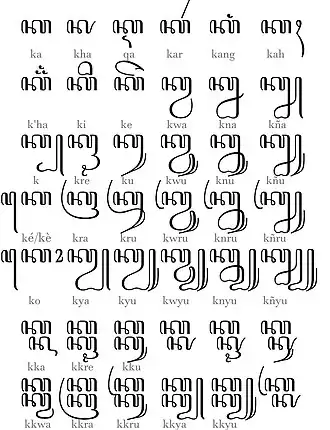 | ꦏ꦳ꦾꦸ kʰyu | ꦏ꦳ꦾꦸꦃ kʰyuh | ꦏ꦳ꦾꦸꦁ kʰyung | ꦏ꦳ꦾꦸꦂ kʰyur | ◌꧀ꦏ꦳ꦾꦸ -kʰyu | ◌꧀ꦏ꦳ꦾꦸꦃ -kʰyuh | ◌꧀ꦏ꦳ꦾꦸꦁ -kʰyung | ◌꧀ꦏ꦳ꦾꦸꦂ -kʰyur |