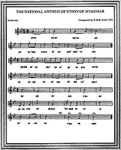 - ^ Burmese: နိုင်ငံတော်သီချင်း; MLCTS: Nuingngamtausihkyang:; Burmese pronunciation: [nàɪɴŋàɴtɔ̀θìtɕʰɪ́ɴ]; lit. 'State Song'