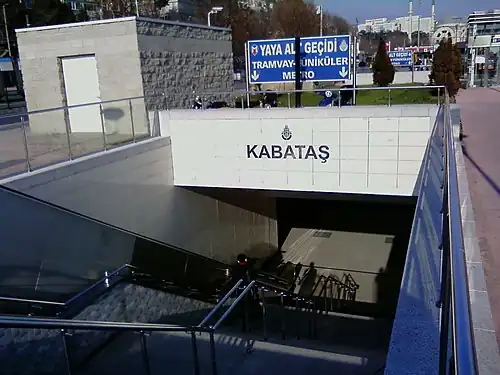 Kabataş station was opened on 29 June 2006, 28 days after the T1 tram line was extended north from Eminönü to Kabataş.[3][4] The station has become an important transfer point between ferry and rapid transit.