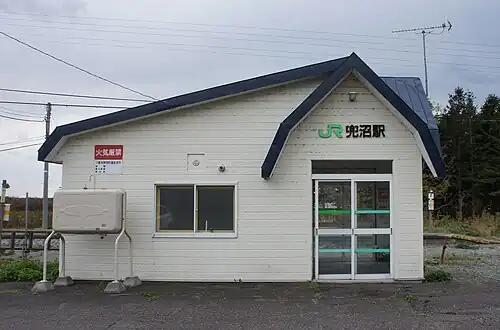 Kabutonuma Station (兜沼駅, Kabutonuma-eki) is a railway station located in the town of Toyotomi, Hokkaidō, Japan. It is operated by JR Hokkaido.[1][2]
