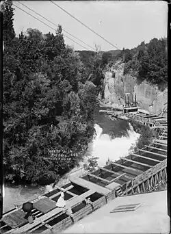 The Okere Falls Power Station was established at the source of the river in 1901, as the first generating plant built by the New Zealand government. Several proposals for a larger power station have been considered, however the high cost of these projects has meant that none have been built to date. The power station operated until 1936.[11]