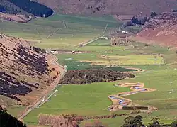 The Kaituna River and valley was a traditional food-gathering place for Māori, and the river's name translates as "a place to eat eels".[3] After European settlement, the Rhodes brothers (William, George, and Robert) acquired from 1851 to 1862 blocks of land between Lake Ellesmere, Mount Herbert, and Lake Forsyth totalling 25,000 acres (10,000 ha), known as the Kaituna Run. They ran cattle and 25,000 sheep, and the valley contained a flax mill and timber mill. The Rhodes brothers had appointed Thomas Parkinson as their run manager, and when they dissolved their partnership in 1875 he purchased the 12,000 acres (4,900 ha) homestead block in Kaituna Valley.[2]