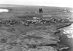 In the early twenty-first century, Kaktovik became a tourist destination to view polar bears.[5][6] This is in part due to the native Inupiat, who are permitted to kill three bowhead whales a year, and after flensing the bodies of the whales, they leave the carcasses on the beach at the edge of town.[7]