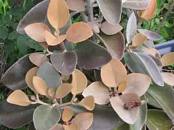 Kalanchoe orgyalis is a species of flowering plant in the Crassulaceae family.[1] It is a succulent commonly known as copper spoons due to its leaf shape.