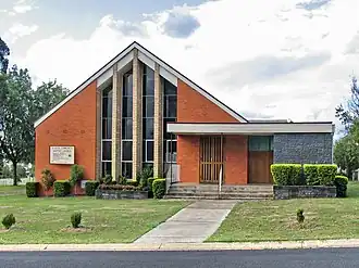 Fassifern Christian Church is on the north-east corner of George Street and William Street (27°56′27″S 152°37′26″E / 27.9407°S 152.6238°E / -27.9407; 152.6238 (Fassifern Christian Church)). It is affiliated with the Australian Christian Churches.[30]