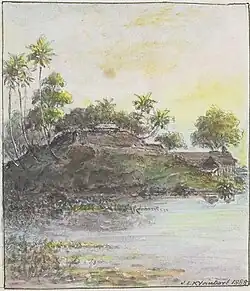 On 15 October 1655 following a siege by Dutch forces, led by Gerard Hulft, the Portuguese commander of the fort, Anthonio Mendes de Aranha, surrendered the fort and garrison of 255 men, without a shot being fired.[5][6] In 1677 the Dutch fortified it by constructing two additional bastions, increasing the size of the ramparts, digging a moat and erecting a drawbridge.[5] It is reported that the Dutch Governor brought over architects from Netherlands especially to rebuild this fort. Most of the building material was sourced locally however it is reported that certain types of rocks were brought from the Netherlands.[7] In February 1769, it was surrendered to the British, and was used for garrison and residence of the Government Agent.[3][7] The building was also used as a country retreat by the Colonial Secretary of Ceylon, John Rodney, who buried an infant son there.[8]