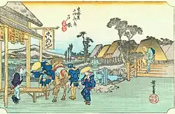 The Shimo no Michi was a branch of the Naka no Michi that departed before Tsurumi (within today's Yokohama), then crossed Maruko, Shibuya, Hatogaya, Yono, Iwatsuki, Iwatsuki, Koga, and Yūki, then reaching Utsunomiya.[4] In Maruko (near today's Kawasaki), the Shimo no Michi divided into the Bōsōji (房総路) and the Hitachiji (常陸) the first going to Kisarazu, the second going to Ishioka in Northern Ibaraki Prefecture.[4]