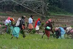 The Kambara nritham or Kambara dance is a folk dance performed by the Adiyan tribe of Wayanad, a northern district of the state of Kerala.[1] In this artform, men sing folk songs and play wind and percussion instruments, while women dance near the paddies where saplings are collected.[2]