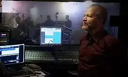 Kambiz Roshanravan's professional activity during this period can be divided into three parts: playing, teaching and composing.[25] In addition to teaching, he continued to expand his activities by playing in concerts, collaborating with the National Television Orchestra of Iran, the Saba Orchestra led by Hossein Dehlavi, and other music groups.[26] He also started composing along with his other activities and performed some of his compositions in the same concerts. In 1974, at the request of the Institute for the Intellectual Development of Children and Young Adults, He released his first works in the form of an album with the names: Blue-eyed Boy, Atal Matal Tutuleh and Music based on the poems of Abu Sa'id Abu'l-Khayr.[27] In the same year, he entered the world of cinema by composing the first soundtrack for the short film Passenger, made by Abbas Kiarostami.[28] In 1975, he wrote, prepared, supervised, performed and published ten phonograph disc records of Radif's sung by Mohammad Reza Shajarian and famous traditional musicians of that time, based on the row of Musa Maroofi.[29][30][31] He also collaborated with other filmmakers in 1975 and 1976, including Nafiseh Riahi (Purple Pencil), Amir Naderi (elegy) and Khosrow Haritash (Kingdom), and was able to establish himself as a composer.[32]