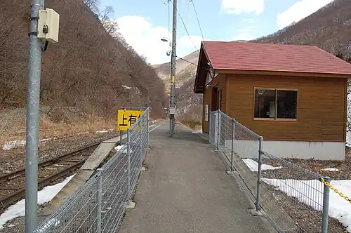 The station has one side platform serving a single ground-level bi-directional track. There is no longer a station building, but only a small shelter on the platform. The station is unattended.