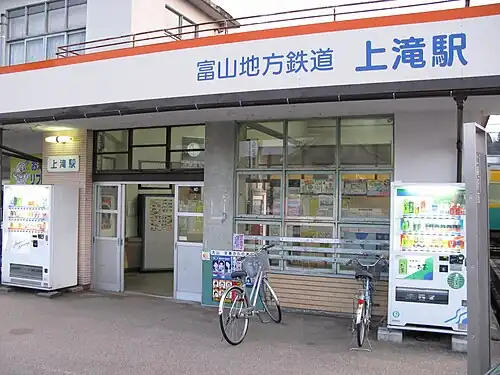 Kamidaki Station (上滝駅, Kamidaki-eki) is a railway station on the Toyama Chihō Railway Kamidaki Line in the city of Toyama, Toyama Prefecture, Japan, operated by the private railway operator Toyama Chihō Railway.