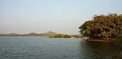 The Kamleshwar Dam, officially known as the "Hiran-I Dam", is a rock-fill embankment dam on the Hiran River in Visavadar, Gujarat State, India. Measuring 764 ha (7,640,000 m2),[1] the dam is located within the Gir Forest National Park and was completed in 1959 for irrigation purposes.[2] The reservoir created by the dam is known for its populations of birds and mugger crocodiles.[1][3]