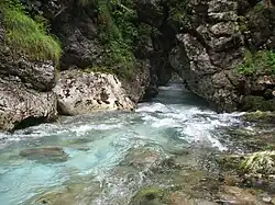 The Kamnik Bistrica[2][3][4][5] (Slovene: Kamniška Bistrica, pronounced [ˈkáːmniʃka ˈbíːstritsa])[6] is an Alpine river in northern Slovenia, a left tributary of the Sava River. It springs from the Kamnik Alps (part of the Southern Limestone Alps) near the border with Austria. It is 33 km (21 mi) long.[1] The Kamnik Bistrica flows through the town of Kamnik, where it is fed by the Nevljica River. It flows into the Sava south of Videm, about 10 km east of Ljubljana.