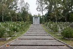 Meanwhile, during the night of August 1 and 2, the main forces of the VIII District completed their concentration in the area of Hill 103 in Łuże Mountain. In the morning, "Szymon" launched his units into another attack on the airfield. However, alerted by earlier clashes, the enemy remained vigilant and was not caught off guard. Well-fortified and with a firepower advantage, the Germans repelled all Polish attacks that morning. After hours of fighting, the Home Army units, threatened by a flanking attack from the Modlińska Road, were forced to withdraw to the Łuże area.[60][61] The VIII District suffered heavy losses, amounting to 31 killed and 45 wounded.[62][63] Among the fallen were Lieutenant "Janusz" and two company commanders, while Captain "Szymon" was seriously wounded. A significant portion of the ammunition reserves was also expended.[64] As a result of this defeat, the Home Army units in the Kampinos Forest remained unable to conduct significant offensive operations until mid-August 1944.[65] Nevertheless, the German command soon issued an order to destroy the Bielany airfield.[66] Some Polish historians and veterans were convinced that it was the attacks of the VIII District that prompted the Germans to abandon the use of the base.[67][68][69]