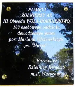 - ^ "Wiersze – cmentarz wojenny żołnierzy Armii Krajowej grupy Kampinos". groby.radaopwim.gov.pl. Archived from the original on 2016-03-04. Retrieved 2014-12-17.