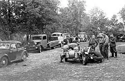 To supplement food supplies, raids were also conducted on estates under German administration (Liegenschaft). Particularly successful was the attack on a German transport unit bivouacked at the manor in Pilaszków, during which Polish lancers captured 254 head of cattle and several wagons loaded with food, cigarettes, and cognac (September 8). Another success was achieved two days later in a raid on the estate in Zaborów, from which several dozen cows, 16 horses, and 8 wagons were taken.[232][233] Additionally, the partisans set up ambushes on the Babice–Leszno road for small enemy units or lone traveling cars and motorcycles. Often, deception was used, exploiting captured motorcycles and dressing soldiers in German uniforms.[234][235] On September 20, the Germans were driven out of Polesie Nowe, but the Legion Battalion paid for this success with relatively heavy losses.[236]