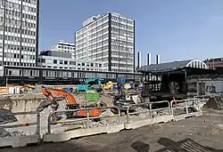 The original ticket hall located on the street Fredrikinkatu was closed down on 4 December 2023. The new Kamppi Health and Wellness Centre will be built in its place, with a new entrance to the metro station on the ground floor.[8] Demolition of the old ticket hall started in early 2024.[9]