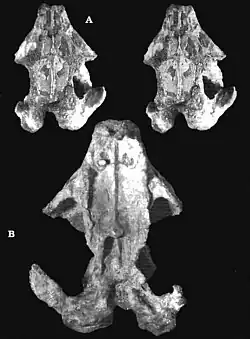 The genus Kamptobaatar ("bent hero") was named by Zofia Kielan-Jaworowska in 1970 based on a single species. "Bent" refers to the observable bend of the zygomatic arches in the skull.