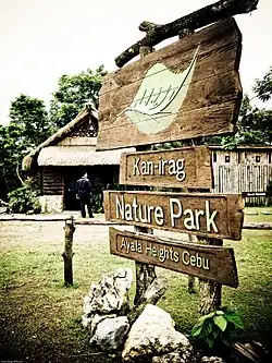 The Kan-irag Nature Park is a watershed and nature park in the uplands of Cebu City, Philippines that opened in the mid-2000s. It was once a bald mountain, but due to reforestation with native trees, the area became a functioning watershed. It is home to about 27 native bird species, such as the emerald dove, Asian glossy starling, the collared kingfisher, the black-naped oriole, and the olive-backed sunbird. The park's size is 71 hectares (180 acres).[1]