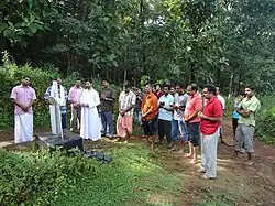 There is a Roman Catholic church in Kanamala, established in 1943 and dedicated to St Anthony of Padua.[1] It is a place of pilgrimage during the holy week, particularly on Good Friday. Many pilgrims used to climb the hill as an act of prayer and offering. Most of the hill is covered with forest. Pilgrimage to the hill which has been patronized to St. Thomas the apostle of Jesus came to India in AD 52 was started in 1940 following an insight and vision happened in dream to Rev. Fr. Anthappan Valiyaveettil, the then-vicar of St. Antony's Church, Perambra. He started the pilgrimage to the hill as he thought that it was the place that he had seen in his dream, and believed that it had significant spiritual importance, since St. Thomas would have gone through the hill as it is the nearest hill to Azhikode where the apostle was banked off the ship and praying at hills was a characteristic of Jesus and his disciples. 2014 marked 75 years of pilgrimage (the platinum jubilee.)