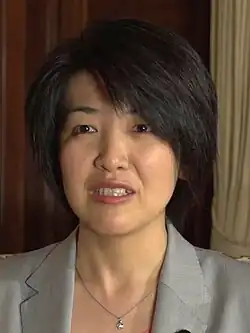 Kanako Otsuji (尾辻 かな子, Otsuji Kanako; born December 16, 1974) is a Japanese LGBT rights activist, member of the House of Representatives for the Constitutional Democratic Party of Japan and retired karateka and taekwondoin.[1] She is also former member of the House of Councilors, and a former member of the Osaka Prefectural Assembly (April 2003–April 2007). One of only seven women in the 110-member Osaka Assembly, Otsuji represented the Sakai-ku, Sakai City constituency. In May 2013, after her party member of the House resigned, Otsuji became the nation's first openly gay member of the Diet, but her term in office expired in July. She won a seat in the 2017 general election and became the first openly gay member of the House of Representatives. In 2024, Otsuji ran for the House of Representatives from Osaka's 10th district, winning in the Kinki proportional district. She will begin her second term in the House of Representatives.