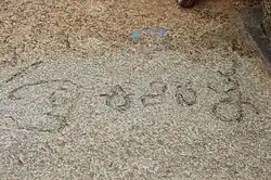 The champu Sanskritic metre (poems in verses of various metres interspersed with paragraphs of prose, also known as champu-kavya) was the most popular written form from the 9th century onwards, although it started to fall into disuse in the 12th century.[32] Other Sanskritic metres used were the saptapadi (seven line verse), the ashtaka (eight line verse) and the shataka (hundred-line verse).[33][34][35] There were numerous translations and adaptations of Sanskrit writings into Kannada and, to a lesser extent, from Kannada into Sanskrit.[36] The medieval period saw the development of literary metres indigenous to the Kannada language. These included the tripadi (three-line verse, in use from the 7th century), one of the oldest native metres; the shatpadi (six-line verse, first mentioned by Nagavarma I in Chhandombudhi of c. 984 and in use from 1165), of which six types exist; the ragale (lyrical narrative compositions, in use from 1160); the sangatya (compositions meant to be sung with a musical instrument, in use from 1232) and the akkara which came to be adopted in some Telugu writings.[32][37][38][39] There were rare interactions with Tamil literature, as well.[36]