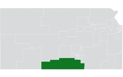 The district is located entirely within Kansas's 4th congressional district, and overlaps with the 79th, 80th, 82nd, 93rd, 114th, 115th, and 116th districts of the Kansas House of Representatives.[4] It borders the state of Oklahoma.[1]