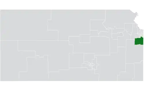The district overlaps with Kansas's 2nd and 3rd congressional districts, and with the 5th, 6th, 8th, 26th, 27th, 43rd, 48th, and 78th districts of the Kansas House of Representatives.[3] It borders the state of Missouri.[1]