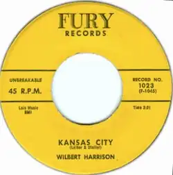 In 1959, after several years of performing Littlefield's "K. C. Loving", Wilbert Harrison decided to record the song. In March 1959, after Little Richard's version was released, Harrison, with a trio including guitarist Wild Jimmy Spruill, recorded it in a New York studio for producer Bobby Robinson of Fury Records.[8] "Kansas City" was released on a single by Fury later that year.