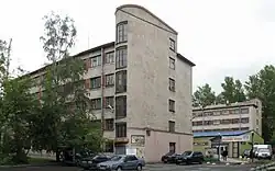 The dormitory complex has been recognised as an architectural monument number 7830242000.[26][27] In the 1950s the Kantemirovskaya street side of the compound was completed with two buildings, the smaller one No 26 housing a dormitory of the Pediatric Institute,[28] and the larger one with two wings spanning the whole block from Lesnoy Prospect avenue to Pargolovskaya street, containing a polymer production design bureau[29] in the left-hand wing, now an office building for rent, and the right-hand wing another Polytechnic institute dormitory.[30]