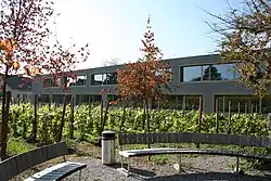 The campus of the Kantonsschule Küsnacht is quite big. There is a very modern library, a big modern building, as well as two older buildings (one of them being the famous Johanniterhaus) and a cantina; a place where people eat lunch. Just next to the school there is a church, but they are not affiliated anymore.