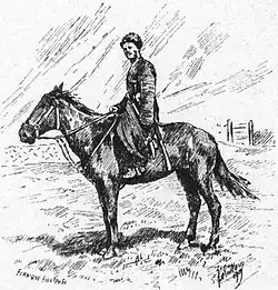 The Karachay horse was known to Europeans since at least the 18th century. The German researcher Peter Simon Pallas (1793) wrote: "They grow a small but hardy and hot breed of horses, known for their outstanding qualities".[7] Another researcher, S. Bronevsky (1823), wrote: "They have a small, but sturdy breed of mountain horses, known under the name of Karachay horses".[8] The Hungarian ethnographer, a member of the Georgi Emmanuel expedition to Mount Elbrus, Jean-Charles de Besse, also gave a high evaluation of the breed in 1829: "Karachays ranch fine breed of horses... They are easy on the go and I don't know any other horse breed that is better for riding on steep slopes and which is so inexhaustible".[9]