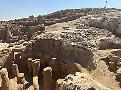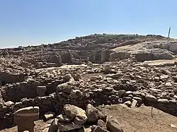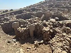 Karahan Tepe (Kurdish: Girê Keçel) is a Pre-Pottery Neolithic archaeological site in Şanlıurfa, Turkey. The site is in the same geographical region as Göbekli Tepe and archaeologists have also uncovered T-shaped stelae there and believe that the sites are related. Additionally, the site may be the earliest known human village, predating the construction of Göbekli Tepe by several centuries, dating to between 10,000 and 9500 BCE.[1]