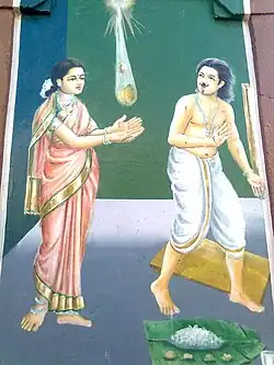Karaikal Ammaiyar (born Punītavatī), meaning "The Revered Mother of Karaikal", is one of the three women amongst the 63 Nayanmars and one of the greatest figures of early Tamil literature. She was born in Karaikal, South India, and probably lived during the 5th century CE.[1] She was a devotee of Shiva.[2][3]