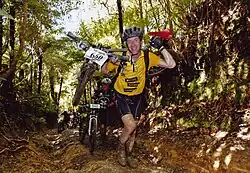 The Karapoti Classic is New Zealand's longest-running annual mountain bike event, started in 1986 by Paul Kennett.[1] The full course is 50 kilometres (31 mi) long and starts in Karapoti Park, Akatarawa, in Upper Hutt, and heads up the 8 kilometres (5.0 mi) Karapoti Gorge.[2] From there it begins a single 30 kilometres (19 mi) loop in the native and pine forest of the Akatarawa Ranges.