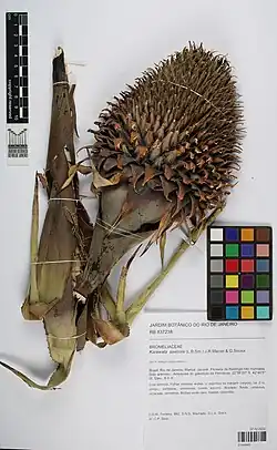 - ^ Martinelli, Gustavo; Vieira, Cláudia Magalhães; Gonzalez, Marcos; Leitman, Paula; Piratininga, Andréa; Costa, Andrea Ferreira da; Forzza, Rafaela Campostrini (January 2008). "Bromeliaceae da Mata Atlântica Brasileira: lista de espécies, distribuição e conservação" [Bromeliaceae of the brazilian Atlantic Forest: checklist, distribution and conservation]. Rodriguésia (in Brazilian Portuguese). 59 (1): 209–258. doi:10.1590/2175-7860200859114. JSTOR 23499386.
