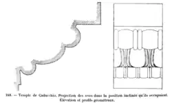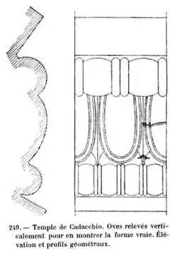Kardaki Temple column capital geometric profile and elevation detail: Projection of the capital oval from the inclined position it occupied onto a plane parallel to the longitudinal column axis.[10]