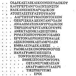 An inscription exists at a museum in Verona which appears to refer to the Kardaki Temple. The inscription, in Doric Greek, details works undertaken by the state of Korkyra (ancient Corfu) for the maintenance and repair of the Temple. It also accounts for the costs of the works and the prices of materials such as tin, lead and brass and the costs of transportation, labour, and excavation.[7] Other costs included the acquisition of a brazen serpent, the construction and erection of an obelisk, and the construction of a retaining wall by a craftsman called Metrodorus.[7]